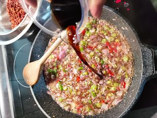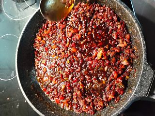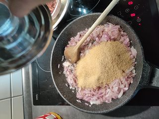 - 2. Die Zwiebel werden in dem Fett vom Bacon gläsig gebraten nun die Chili und den Zucker dazu geben. Wenn der Zucker geschmolzen ist, wird mit den flüssigen Zutaten abgelöscht.
